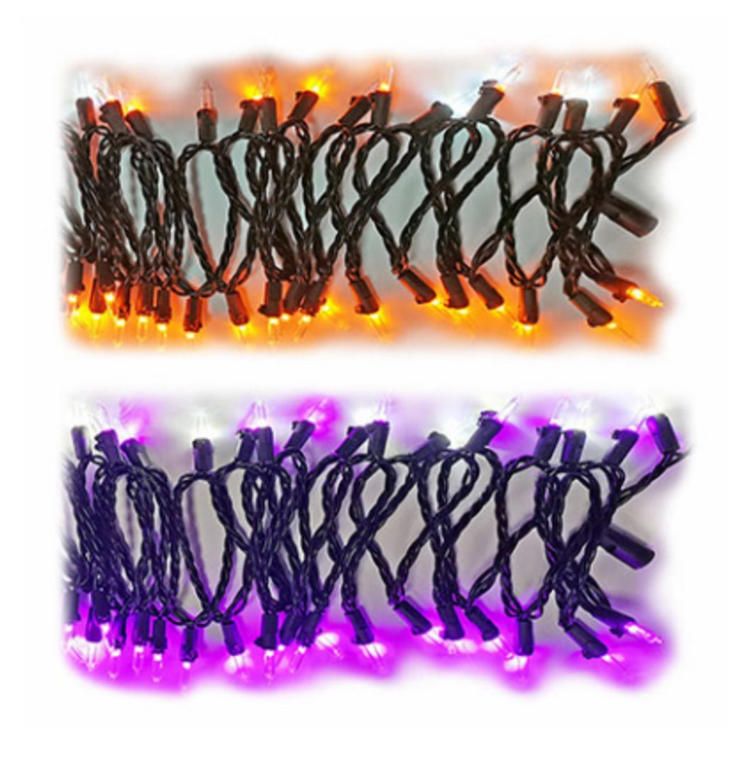 - Orange to purple changing led lights with cool white twinkling bulbs